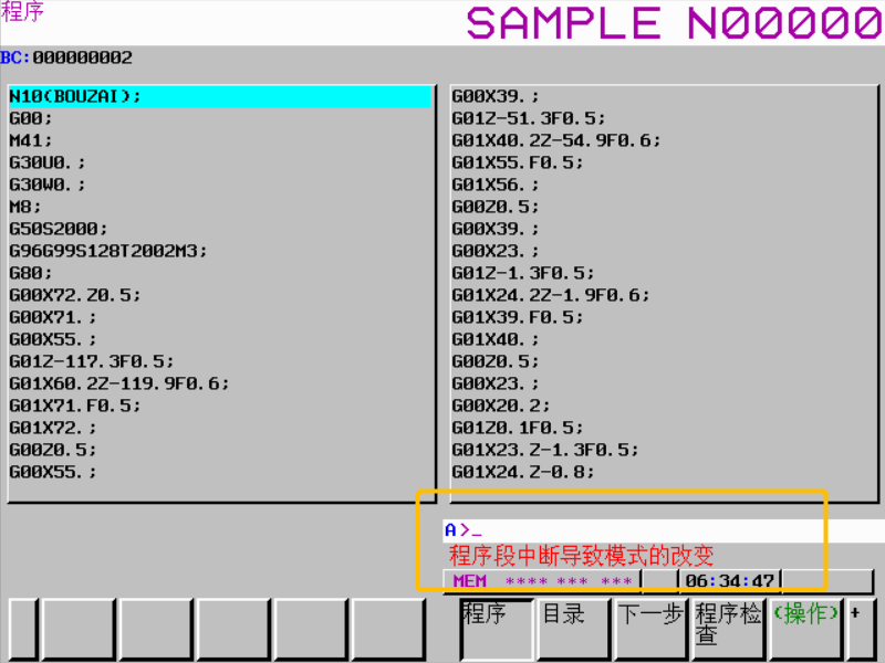 昨天在微信群中有个人遇到如下问题,问机床出现 程序段中断导致模式的改变报警怎么解决,报警如下所示: